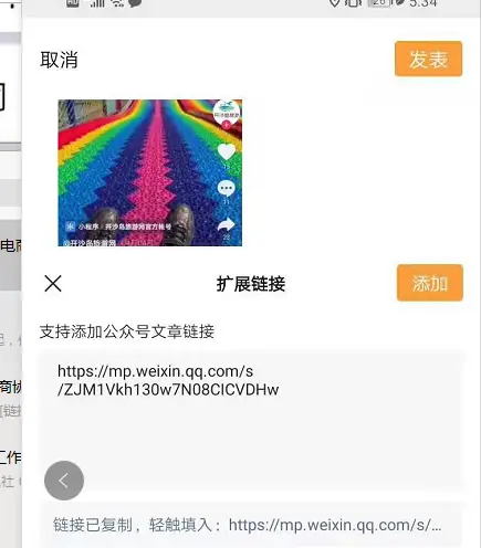 8. 粘贴刚刚复制的公众号文章链接,再发布视频
